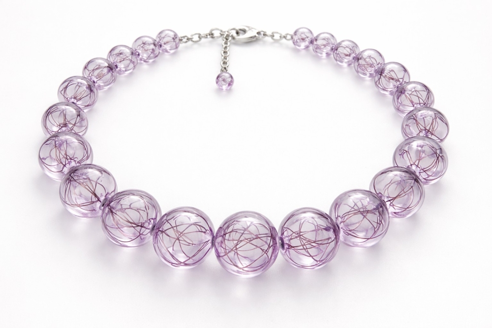Ukázky náhrdelníků vytvořených z mých foukaných skleněných korálků. Každý kus je originál, ve kterém se propojuje tvar, barva i struktura skla.